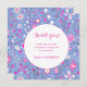 Moderno padrão botânico de flores silvestres, cor-de-rosa brilhante e branco, espalhado sobre um fundo azul-reluzente para uma sensação feliz e otimista. Um belo cartão para obrigado os convidados de casamento por um dia maravilhoso.