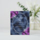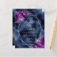 Este elegante convite de casamento moderno apresenta uma estrutura geométrica prateada decorada com buquês florais roxas e prateadas sobre um fundo de película azul marinho. O texto personalizável combina a escrita manual imétrica de cinzas prateadas, a placa de cobre e as fontes itálicas.