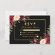 Cartão RSVP de Casamento Preto e Dourado com Borgonha Floral de Watercolor