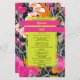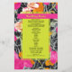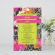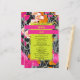 Forma retangular amarela neon sobre cor de laranja rosa e cor de pêssego floral moderno com design marmorizado escuro. Os nomes são néon amarelos em bares cor-de-rosa quente.