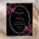 Este elegante convite de casamento moderno apresenta um quadro geométrico de prata decorado com flores de burgundy e prata num fundo preto. O texto personalizável combina a escrita manual imétrica de cinzas prateadas, a placa de cobre e as fontes itálicas. O reverso é preto sólido.