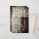 Personalize o Menu de Casamento Floral Ocidental, casual mas clássico, Rustic Cowboy Boots Country, com os detalhes da refeição que você servirá na sua festa do celeiro do noivado, no almoço do chá de panela ou no janto de recepção do casamento, adicionando a salada ou o primeiro curso, a entrada ou o segundo curso e a sobremesa ou o terceiro curso. Este encantador menu personalizado estilo rancho apresenta uma fotografia digital em tons de sépia preto e branco melhorada de botas de cowboy de couro com um fundo de madeira e flores brancas enfeitando os cantos.