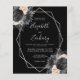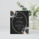 Este elegante convite de casamento moderno apresenta um quadro geométrico prateado, decorado com pessegueiros, flores pretas e prateadas em fundo preto. O texto personalizável combina a escrita manual imétrica de cinzas prateadas, a placa de cobre e as fontes itálicas. O reverso é preto sólido.