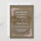 Anuncie seu dia especial em estilo com este romântico convite de casamento "Salve a Data". Apresentando um fundo castanho quente, delicadas flores cor-de-rosa e detalhes elegantes da estrutura do ouro, este design dá o tom para uma celebração de eterno e coração. Personalize com seus nomes, data e local.