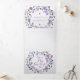 Convite de Casamento Floral Roxo Elegante Dobra Tripla Tudo em Um para Casa de Campo Rústica ao Ar Livre com um RSVP que o convidado corta e usa como cartão postal para enviar de volta para você, se desejar. Temas de casamento Boho, ao ar livre, Jardim Tenteado. Corações são opcionais e podem ser excluídos ou movidos para o local de sua escolha. Você pode copiá-los e colá-los se precisar de corações adicionais.