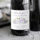 Essas lindas etiquetas de vinho espumante são perfeitas para agradecer convidados especiais de casamento ou membros de sua festa de noiva. ou para seu janto de ensaio, chá de panela ou recepção. O design rústico boho chic apresenta um aglomerado de rosas pintados manualmente de aquarela, flores e verde em tons de lavanda e roxo lilás. No texto lê-se Obrigado por nos celebrar. Há espaço para seus nomes e a data do casamento.