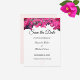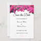 Cabeçalho floral vermelho magenta legante em branco Guarde o Cartão de Convite de Casamento de Data. O verso tem duas silhuetas cor-de-rosa no fundo do rosa dourado. Bougainvilleas são acolhedoras e bonitas!