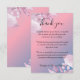 Estou entusiasmado em compartilhar um cartão liso de "casamento Obrigado" que é personalizável. Inspirado pela beleza das flores de cereja, também conhecida como Sakura, este cartão apresenta lindos padrões florais, folhas de cereja e um ambiente botânico. A design mostra um gradiente mesmerizante de uma pincelada rosa macia a um azul poeirento sereno. Esta mistura inspirada no aquário de cores adiciona sofisticação e romance. Assuma o charme desta design pastel, pois traz seus sonhos de casamento à vida. Que a beleza deste cartão plano, com os seus detalhes florais de cereja Sakura e o seu gradiente romântico, sirva a sua alegre celebração para vir. Projetado por Hobinishop