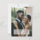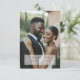 Elegante cartão de agradecimento de casamento com foto moderna e uma tipografia estilosa. Uma foto, com uma mensagem sincera e foto no verso. A tipografia com nomes e data é uma fonte serifada clássica e elegante. Substitua as fotos de amostra pelas suas próprias fotos de casamento favoritas.