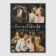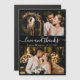 Imagem de Casamento Elegante, Minimalista, Negra e Branca, Obrigado magnatas. modelo de cartões de agradecimentos de na moda com três fotos. Com o texto "Amor e obrigados" em uma letra escrita tipográfica escrita, escrita à mão, em branco, sobre fundo preto. Forma cardíaca entre os nomes. Fácil de personalizar o nome e a data personalizados. Se precisar de ajuda ou item correspondente, entre em contato com o designer!