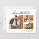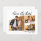 Casamento De Colagem De 3 Fotos Com Script De Caligrafia Elegante Minimalista De Orçamento Salva As Cartões De Data Em Preto E Branco. Esta delicada design é feita precisamente para casamentos contemporâneos, exuberando um encantador apelo romântico. Destacando uma graciosa colagem em grade de 3 fotos e uma caligrafia química em uma letra de cauda de swash com letra manuscrita, essas cartas simbolizam a elegância moderna. Personalize-os sem esforço com seus preciosos detalhes e fotos do seu casamento, oferecendo um barato ainda refinado para anunciar seu dia especial.