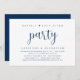 Convite de casamento fuga temático azul marinho moderno (Festa Feliz para Sempre). É perfeito para o seu casamento recepção de fuga / festa de celebração pós-casamento. Adicione seus detalhes em fonte / letra preta correspondente.