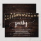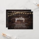 Lindo Convite para Festa Feliz para Sempre, Anúncio de Casamento Fuga / Convite, em design de Luzes de Corda em Madeira Rústica de Fazenda. Isto é perfeito para o seu casamento e festa de celebração pós-casamento. Adicione seus detalhes em fonte / letra correspondente.