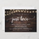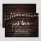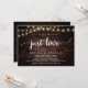 Linda celebração de festa de nada chique só amor, Anúncio de Casamento Fuga / cartão de convite, em design de Luzes de Corda de Madeira de Fazenda Rústica. Isso é perfeito para o seu casamento e festa de celebração pós-casamento. Adicione seus detalhes em letra / fonte correspondente.