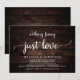 Linda festa de celebração de amor, nada de luxo, apenas amor, Anúncio de Casamento Fugitivo / Cartão de convite, em design de madeira marrom escuro rústico. Isso é perfeito para o seu casamento e festa de celebração pós-casamento. Adicione seus detalhes na fonte / letra correspondente.