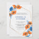 Este design apresenta flores de papoila azuis e laranja em texturas de mármore de cinza clara. Excelente para as comemorações do casamento! Os produtos correspondentes estão disponíveis.