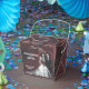 Uma caixa de favores do estilo gótico para embalar qualquer bolo, ou sobras, ou um pequeno presente para dar aos seus hóspedes como uma lembrança de seu casamento e para os obrigado por vir.