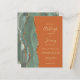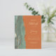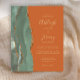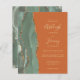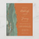A borda esquerda deste elegante convite de casamento moderno apresenta um sábio verde aquarela agate bordado com falsa brilho dourado. O texto personalizável combina manuscrito dourado, fontes em copperplate e itálico em um fundo laranja queimado. O verso apresenta um design verde-sábio e um agate dourado correspondentes.
