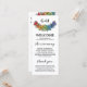 Encantador programa de casamento floral LGBTQ com suas iniciais no topo e flores coloridas arco-íris embaixo, inspiradas pela bandeira do orgulho. Adicione sua cerimônia, festa de casamento, e um obrigado para você. Um programa de casamento floral com flores bonito nas cores da bandeira do orgulho. Um programa de casamento de gay coloridos com seu monograma, fontes encantadoras e flores em cores de orgulho.