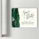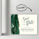 Este elegante cartão magnético de data salta uma cor d'água verde esmeralda, borda agitada com brilho dourado falso. O texto personalizável combina o script de escrita manual verde, as fontes em copperplate e itálico em um fundo de marfim.
