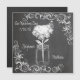 Casamento com o Chalkboard Mason Jar Garden - na moda, mas com letra de tipografia casual. Um jarro de mason cheio de flores e uma borboleta em um giz como desenhando sobre um fundo de quadro.