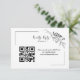 Um simples e elegante cartão de cercado RSVP no website do casamento, em um estilo moderno de design minimalista, com cartazes clássicos e uma vibração elegante e sofisticada em um fundo branco A mensagem pode ser facilmente modificada com sua data, site do casamento e código de QR digitalizável.