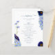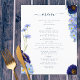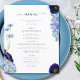 Lindas flores silvestres de cor aquática de vassoura e folhagem em azul-esbranquiçado, azul-de-cavilha, marinho, roxo e verde, ideais para um único primavera ou dia de verão do cardápio do casamento. A escrita elegante da tipografia moderna, em azul marinho, complementa a trabalho de arte impressionante do bô, que inclui flores de milho, papoila, cosmos, esquecem-me nots e uma folhagem delicada. O cardápio de casamento da Boêmia Chic é perfeito para um prado de primavera, casamento de jardim de verão. Arte original da artista Catherine Sweetman