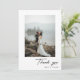 Mande um grande obrigado para seus entes queridos e convidados de casamento com este cartão com fotos moderno. Apresentando "Obrigado" em uma fonte moderna de caligrafia negra. Adicione sua foto à frente e atrás da placa. Personalize com seu nome e foto ou clique em "Clique para personalizar mais" para alterar o estilo, a cor e o tamanho da fonte ou adicionar caixas de texto adicionais.
