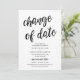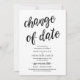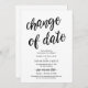 Este é um cartão de anúncio de casamento adiado, com o título do cartão, mudança de data, na fonte do script Black, design moderno temático rustico.