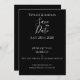 Este é um casamento simples, moderno, não fotográfico, salvar o cartão de convite de data. É em preto clássico e branco e tem uma tipografia elegante na escrita. Na frente diz, "Salve a data", com espaço para seus nomes, e sua data de casamento, embaixo diz, "Estamos nos casando! & Adoraríamos que você comemorasse conosco!" juntamente com sua localização de casamento e seu espaço para mais informações. No verso também diz, "Salve a Data", junto com seus nomes, e data do casamento. Esta na moda é perfeita para que seus amigos e família saibam sobre sua data de casamento antes de enviá-los o convite formal para o casamento. Para personalizar, basta digitar seus nomes, data do casamento e local junto com outras informações, na caixa de texto personalizar. Aqui você também pode mudar o resto do texto se quiser. Para alterar a cor ou a fonte, dê uma olhada na ferramenta de edição de design. Se precisar de ajuda para personalização ou para um projeto personalizado, entre em contato comigo por meio de bate-papo zazzle ou email: ursuladawnmoon@gmail.com