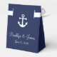 Caixas náuticas azuis de marinho (caixa de propinas com fita branca) com âncora e texto personalizável - você pode adicionar o nome da noiva e do noivo e a data do casamento.