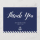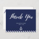 Casamento náutico Obrigado cartões postais com faixas marinho azul e branca, âncora branca e texto branco personalizado - você pode mudar o texto, impresso em fundo azul marinho