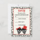 Crânios elegantes Cartão RSVP de Casamento Negro Vermelho do Halloween, apresentando uma noiva de casal do crânio preto e noiva sobre fundo de marfim e uma borda padrão do crânio. O noivo veste um chapéu vermelho e a noiva um arco vermelho.