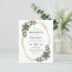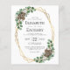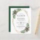 Este design apresenta um quadro geométrico dourado, decorado com cones de pinheiros com aquarela e verde de inverno, incluindo eucalipto e folhas sagradas. Ideal para um casamento no inverno ou no Natal. A parte traseira da placa é uma forma correspondente de verde sólido.