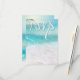 Tema de Casamento na Praia. Belas águas cristalinas do oceano brilhando ao sol, espuma branca na areia limpa da praia com uma folha de palmeira e flor cor-de-rosa claro no canto. Casual ou formal, para um casamento na praia ou ilha de destino - Esta é parte de um conjunto completo de casamento com papelaria de casamento grátis encontrado em The Barefoot Bride http://zazzle.com/TheBarefootBride