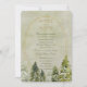 Casar-se na floresta ou no lago? Este belo convite enfatiza um ambiente pacífico entre os pinheiros. Um quadro geométrico dourado completa a imagem. Citação de amor nas costas.