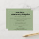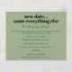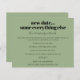 Um valor para o alternativo do ORÇAMENTO em tamanho menor de 4,5 x 5,6" de semirbrilho de 110 lbs, que é de espessura semelhante a um cartão postal (no entanto, não é adequado para uso como cartão postal). POR FAVOR, OBSERVE QUE HÁ UM convite por folha. Casando Novo Encontro Igual A Tudo O Resto Sage. Quando as coisas acontecerem e, infelizmente, for necessário mudar a data do seu casamento, isso permitir-vos-á que saibam o vosso novo encontro o mais depressa possível. Este simples design tipográfico com texto preto no verde sábio é totalmente personalizável. Personalize facilmente o texto na frente e atrás. Você também pode alterar estilos de fonte, cores e cores de fundo, se desejar por meio da opção personalizar mais. Se precisar de ajuda, por favor, me mande mensagem.