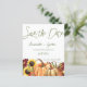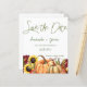 O Casamento outono Floral De Outono Da Abóbora Salva A Data. Casamento elegante Salve os cartões de data para um casamento temático outono/outono. O design tem folhas de outono de abóbora, flores de sol ilustrando o fundo e o texto escrito em bonito texto. Esses cartões salve a data clássicos simples são perfeitos para anunciar seu grande dia. Mande essas cartas elegantes para a família e amigos. Personalize as cartas mudando os nomes da noiva e do noivo e a data do casamento. Para mais personalizações, contacte-me em mypaperlove.2021@gmail.com