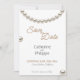 Casamento Elegante Branco Salve o Convite de Data com um colar de pérolas prateado em aquarela. É muito fácil personalizar, com detalhes de seus detalhes pessoais.