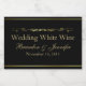 Mini vinho espumante ou etiquetas de vinho pronto para você personalizar com suas próprias informações. Preto elegante com linhas de destaque de tom dourado, na parte superior e inferior desta etiqueta horizontal. Gráficos de tom de ouro elegante florescem, no topo, e texto ouro personalizado amarelo abaixo dele. Personalize o texto da sua recepção de casamento. Excelente para sua mesa de recepção de casamento ou favoritos de convidado.