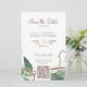 Foto personalizada do noivado na moda casamento no inverno de orçamento moderno e elegante da Rússia salve a data modelo com o código QR no site com galhos secos, folhas verdes de pinheiros e salpicos de aquarela. ++++++++++++++++++++++ adequados para a elegante natureza rustica do inverno, floresta, campo, estância de montanha ou casamentos de Natal.