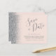 Este elegante orçamento salve a data card apresenta uma borda cintilante prateada. O texto personalizável combina o script de escrita manual de cinzas, as fontes em copperplate e itálico em um fundo cor-de-rosa pincelado. O verso apresenta um pincel e design prateado correspondentes.