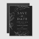 O eucalipto simples moderno deixa um artista único negro e branco minimalista, arte de linhagem branca, criado ao casamento, salvo o ímã de convite para lembrar amigos e família de manter a data livre. Linda folhagem minimalista, desenho de linhas verdes na moda simplistas com guião branco elegante de tipografia sobre fundo preto. Um design botânico que é fácil de personalizar usando o modelo fácil de usar. Arte original da artista Catherine Sweetman