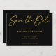 Casamento de estilo manuscrito preto moderno Salve o cartão de convite de Data. Este design apresenta uma fonte de estilo de caligrafia grande que você pode alterar sua cor. Você também pode personalizar todos os detalhes e cores neste design Salvar a Data.