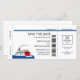 Salve os cartões de convite de Data com um design de cartão de embarque legal vermelho e azul para um casamento no ribeirinho! Modelo fácil de usar, basta inserir suas informações no espaço fornecido ou clique no botão personalizar para adicionar texto adicional.