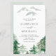 Convide convidados para o seu evento com este convite de casamento personalizável. Apresenta floresta aquosa e tipografia minimalista. Personalize adicionando seus detalhes. Este convite para casamento em floresta é perfeito para o exterior e casamentos no inverno.