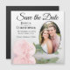 Esses cartões salve a data magnéticos são uma maneira maravilhosa de deixar seus amigos e família saberem sobre seu próximo casamento. Eles apresentam um belo design que é romântico e elegante com um solteiro cor-de-rosa pálido, pálido e pálido, de rosa, refletindo em uma piscina de água com ondas e ondulações e sua foto em um quadro em forma de oval em um fundo branco clássico. A legenda: Salvar a data com espaço para seus nomes, data e local.
