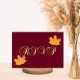 Cartões de resposta de casamento RSVP elegantes e modernos com topografia dourada e marsala burgundy. Folhas metálicas laranja douradas. A cor do fundo pode ser alterada. Modelos editáveis - adicione seu texto. Entre em contato com o designer para outras variações. Encontrado na Coleção de Casamentos 'FALL IN LOVE'.