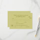 Apresente seu dia de casamento com elegância subestimada usando este cartão de resposta maravilhosamente trabalhado - projetado para casais que apreciam o charme de ilustrações inspiradas na safra. O cartão de resposta apresenta um fundo colorido de cor cartreuse sereno e um tipo de letra verde-oliva, que fornece uma estética mediterrânea vintage.