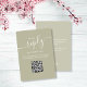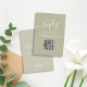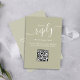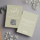 Este design apresenta um código QR para casamentos, seus convidados podem RSVP on-line com este mínimo, cartão de gabinete, um simples verde de sábio, com nosso site, resposta RSVP de orçamento